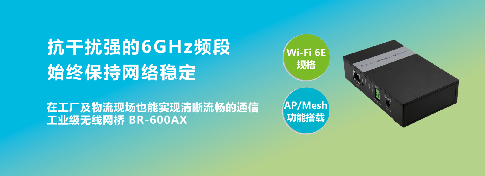 BR-600AX 是支持 Wi-Fi 6E 的工业级无线网桥,可轻松将有线局域网设备转换为无线连接。该设备支持希来科独创的 AMC Mesh 功能,可作为工厂、仓库内的无线基础设施使用。